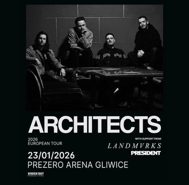 Architects are metalcore stars in their own right. The end of their development and growing fame is practically not in sight. The concert at the Gliwice Arena will remind you why this is so. In addition to them, the metalcore bands Landmvrks and the anonymous President will also perform.