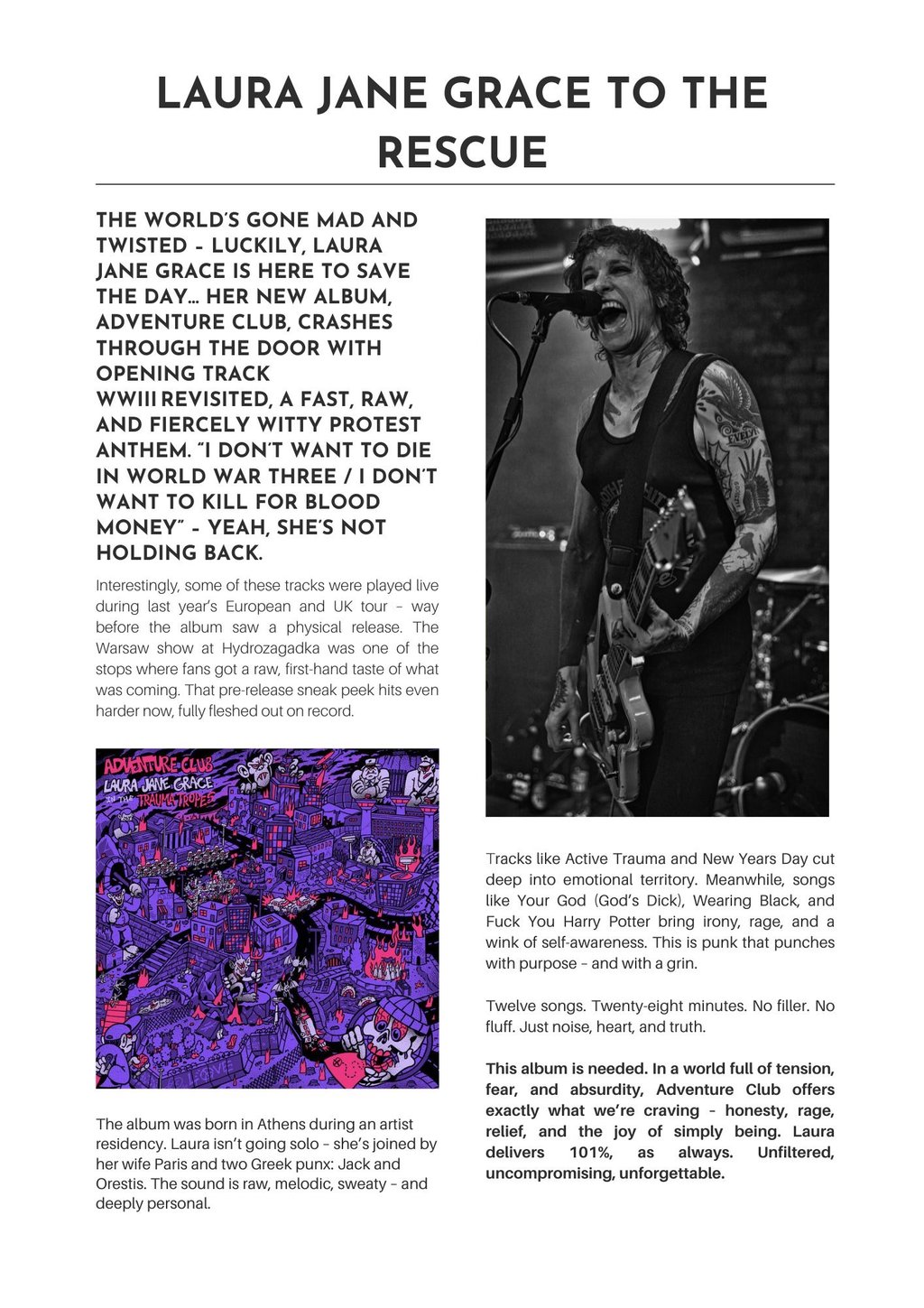Laura Jane Grace In The Trauma Tropes - Adventure Club - Album Review