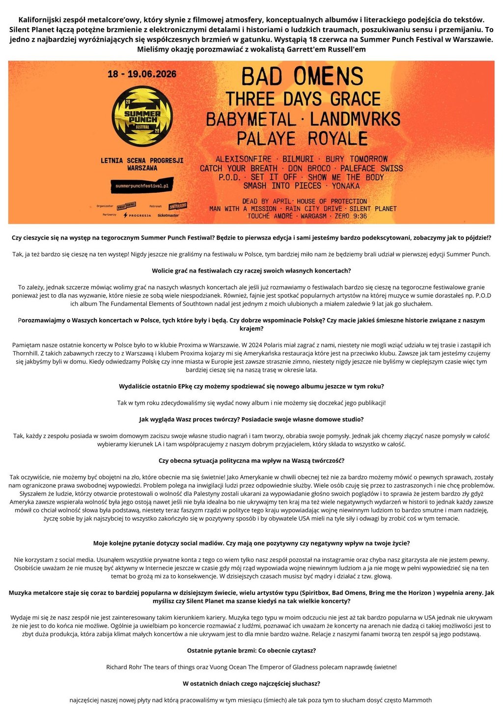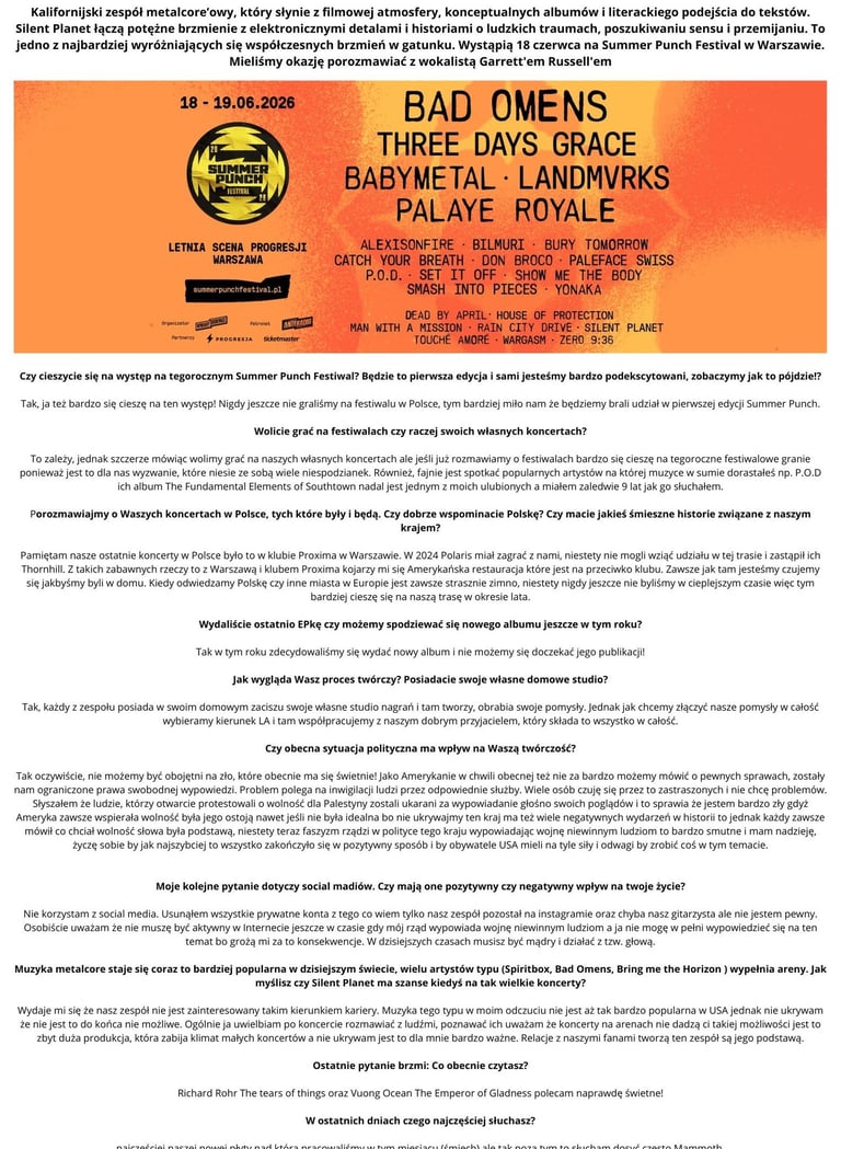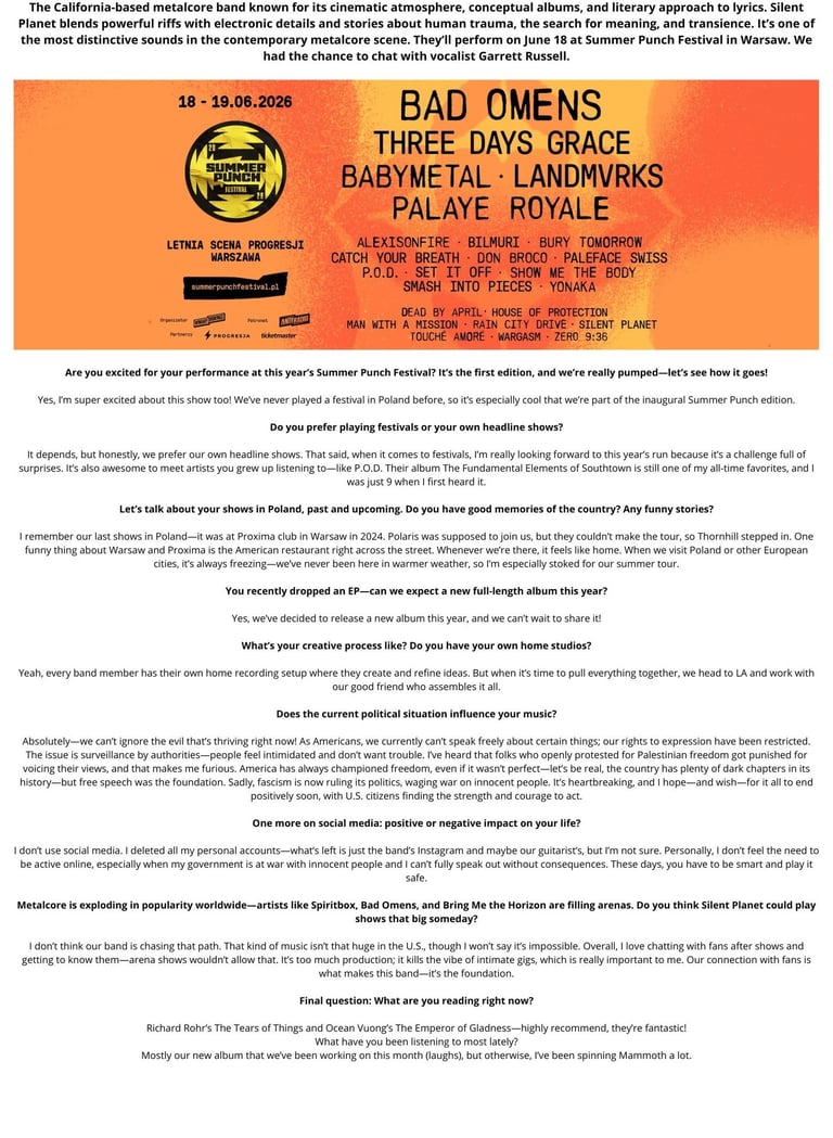 Interview - Garrett Russell, Silent Planet (PL)