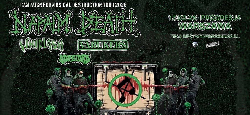 The Campaign for Musical Destruction tour returns to Poland — this time featuring a lineup steeped in the old-school spirit of extreme music! Napalm Death are coming back to Warsaw, joined by the legends of thrash metal and the second wave of British punk rock — American band Whiplash, the UK’s The Varukers, and Poland’s own Dopelord. The concert will take place on February 17 at Progresja in Warsaw.