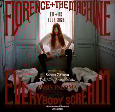 Florence Welch, known globally as Florence + The Machine, has announced a UK and European tour in celebration of her sixth studio album, Everybody Scream, set for release on October 31. The artist will take fans on a spellbinding journey through the continent’s largest arenas, including two nights at London’s O2 Arena, Accor Arena in Paris, and Tauron Arena in Kraków. Supporting Florence on all eighteen dates of the Everybody Scream tour will be Paris Paloma.