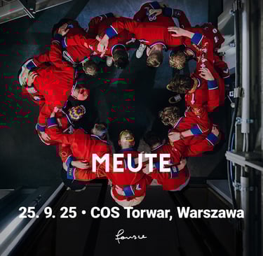 MEUTE will perform in Warsaw at COS Torwar on September 25, 2025. Tickets, priced from 149-199 PLN, are already available on Fource.pl, eBilet.pl, Eventim.pl, GoOut.pl, and Ticketmaster.pl – service fees may be added to ticket prices.