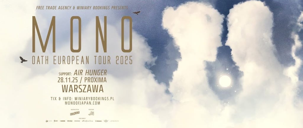 Japoński zespół MONO powraca do Polski! Postrockowa formacja wystąpi 27 listopada w krakowskim klubie Kwadrat i dzień później w warszawskiej Proximie, gdzie promować będzie płytę “Oath”. Jako support na obu koncertach wystąpi Air Hunger.