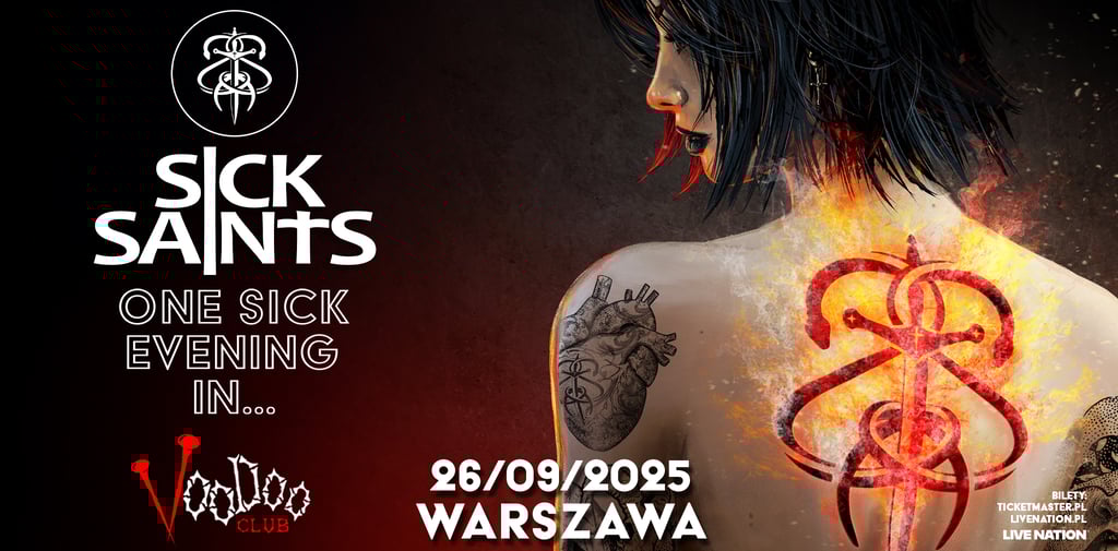 Sick Saints: We've prepared something exclusive. We will play our ONLY club concert of autumn 2025 for you. We didn't manage to make it in the spring, so on September 26th, Kraków's #brutalglam is rolling into VooDoo in Warsaw. You will hear not only tracks from our album "Out of the Night," which premiered on March 7, 2025, but also NEW MATERIAL that has never been played anywhere before. We will bring you #brutalglam merchandise dedicated to the album and singles, as well as brand-new products.