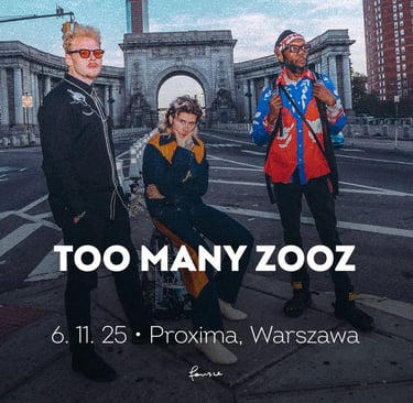 Trio Too Many Zooz opisuje swoją twórczość jako “Brass House” – kinetyczną muzykę instrumentalną łączącą awangardowy jazz, EDM, punk rock oraz wiele innych tradycji. Z tego połączenia zrodziła się niepodrabialna marka wysokoenergetycznej muzyki tanecznej. Zaczynali w 2013 roku jako grajkowie w nowojorskim metrze, by z czasem stać się viralową sensacją i rozpoznawalnym na całym świecie fenomenem, regularnie koncertującym i publikującym na YouTube nagrania, które zdobyły miliony wyświetleń.